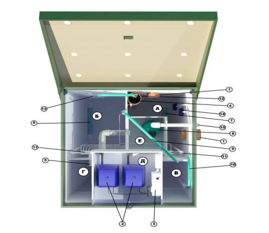 Внутреннее устройство автономной канализации ТОПАС 4 Пр и принцип работы